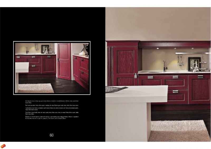 Дизайнерские решения, которые предлагает фабрика, тоже радуют разнообразием. Каждый сможет найти здесь кухню по душе. Стили «классика», «модерн», смешение стилей, любые индивидуальные пожелания клиента. Особенностью продукции этой фабрики является также большое разнообразие цветовых решений.